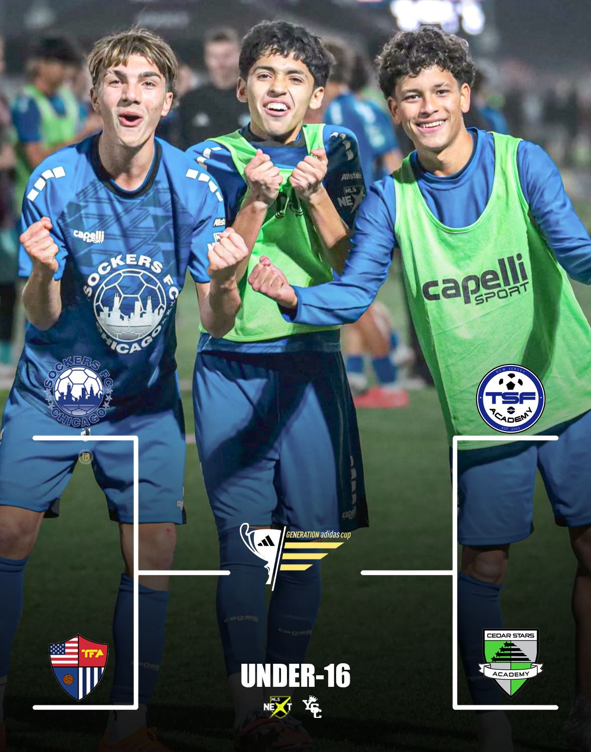With only tow matches left at the U16 level to decide who will be heading to Generation adidas Cup, pressure is at an all time high. Sockers Fc have already beaten the likes of Barca Residency and they beat Wake Fc in penalties. Meanwhile TFA has been battling it out since their round of 32 penalty shootout victory. On the other side of the bracket to teams from New Jersey will battle it out for the other spot in the final. Cedar Stars Bergen has already taken down TSF Academy 3-0 this season, so we will see if revenge is on the table.